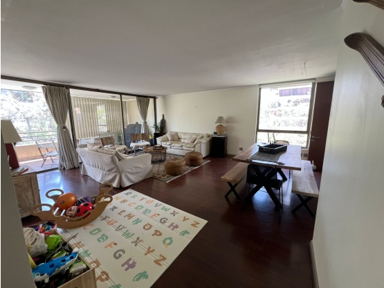 Departamento amplio con excelente distribución, de 140 mts.2 útiles aprox. con 150 mts.2 totales aprox., luminoso, impecable, orientación nor-oriente. Piso flotante en living-comedor y dormitorios y cerámico en hall, pasillo, terraza, baños, cocina y logia.